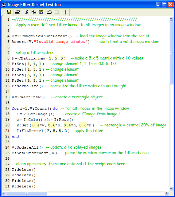 real data type displayed in Mira. At left is the result of executing the script: The filter defined in the script