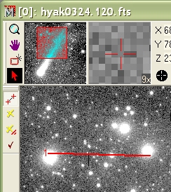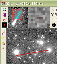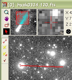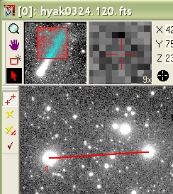The next figure shows centroiding on the ending point only. Mira takes the starting point literally and locks onto the ending point at its centroid position, instead of where you release the mouse button.