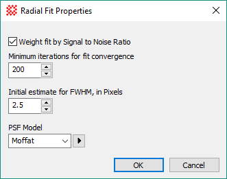 Sets the radius over which a PSF (Moffat or Gaussian) function is fit. |
