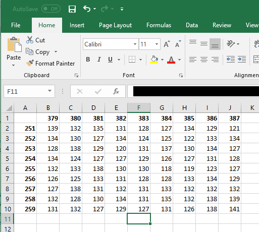 The Open Table in Excel command opens a Microsoft Excel worksheet and saves the table data to it. Note that the command often takes 1 to 2 seconds to launch a copy of Microsoft Excel before saving the table data to it. Column and Row headings are saved as bold text. This command obviates the need to save the table as an intermediate file in TXT or CSV format, launch Excel, and then import the file.
