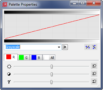 There are 3 ways to adjust the palette. All of these methods directly update the displayed image(s). You do not have to use the Palette Properties dialog to adjust a palette. The Palette Properties dialog shows the mathematical changes to the palette while the Image Window shows the effect of the adjustments on the displayed image.