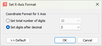 Use this option to use the drop list to select the number of digits right of the decimal point. For example, choosing "2" with coordinate value 123.456789 would display 123.45. |