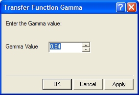 Some of the menu items require more information. The menu items Specify %, Specify Z, and Specify Gamma (not shown above) open the dialogs shown below to request the required values.