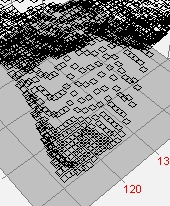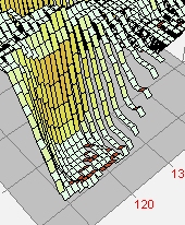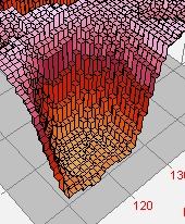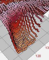This Illuminated Surface was drawn with the Ribbon Pixel Representation. The Overlay grid was enabled. This representation connects pixels with a sloped facet, whereas the related Stepped Ribbon draws a horizontal cap on the pixel value with vertical facets on the pixel sides.