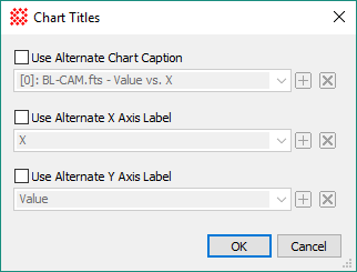The Chart Titles dialog is used to change the titles used for the top caption as well as the horizontal and vertical axis names after the chart is created.