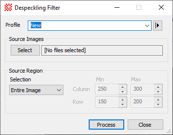 The Despeckling Filter command opens from