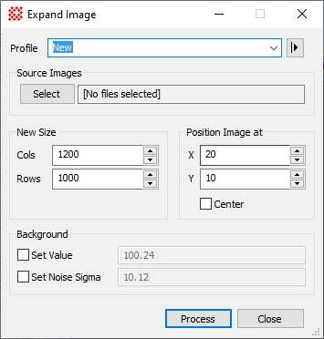This is the coordinate of the corner of the old image in the new background. Mira coordinates are 1-based, which means that using a value of (1,1) makes the corners exactly flush. If you check the Center check box, Mira centers the old image in the new background, ignoring the X and Y position values you specified. |