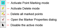 The following picture shows a Plot Window with several points marked on the graph. This picture shows each of the markers available from the Shape Properties page of the Marker Properties dialog. The point measurement results accrue in the Points Docking Pane at the bottom of the Plot Window. To reduce the screen space used by the Points pane, use its stick-pin to tabify it on the Plot Window border.