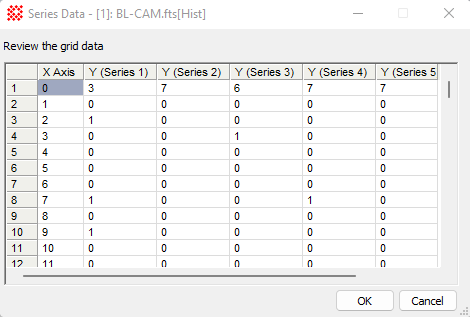The picture below shows the Plot Series Data dialog for a histogram plot of 5 of the "BL-CAM" sample image provided in this Mira distribution.
