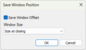 Note: Saving the window offset causes new view windows to open at the same location on top of existing windows of the same type, obscuring earlier windows from view unless the top-most window is repositioned.