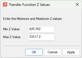 Figure 1. Min Z and Max Z are the minimum and maximum pixel values for the transfer function. These values are determined inside the transfer function sample region selected using the Sample menu options.