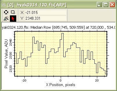 5. Repeat the previous step using Averaging Mode > Median followed by the Median Row command to create the following plot. If the toolbar command is not available, click on the image to give it focus and load its toolbar. Note that the Averaging mode change applies to this image window only. To make a setting the default, see Plot Averaging Mode