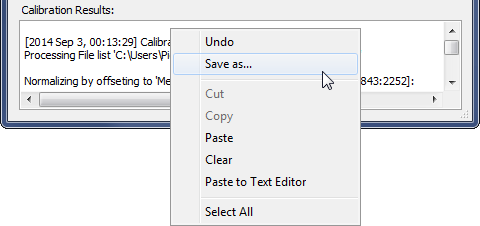 processing messages in the "Calibration Message Log" text area at