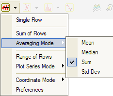 The Plot Averaging Mode describes how a range of adjacent rows or columns are combined to produce a plot showing a single line. Plot averaging works only for Row and Column profile plots in which the image cursor is used to define the range of lines to be averaged. The available averaging modes are described in the table below.