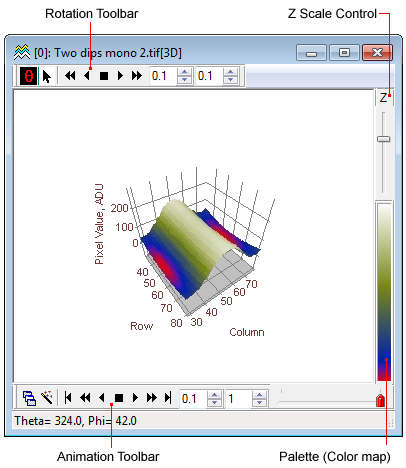 palette to map the image Z value to a wireframe grid.