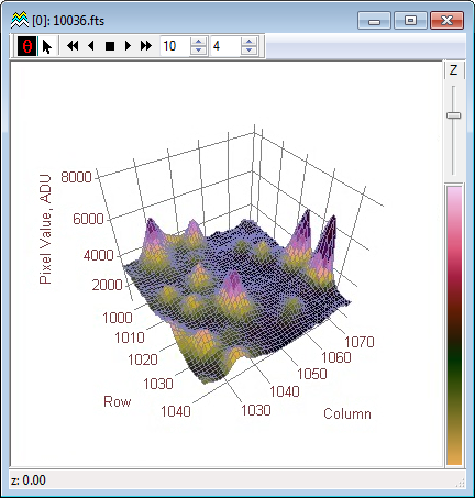 pixels as a 3-D surface. The image pixel value is used as the 3rd