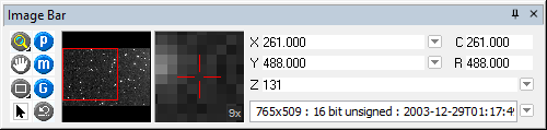 Image Bar: This docking pane controls zooming,
