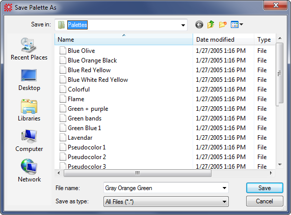 named "Gray Orange Green" is to be saved but you can choose any