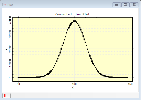 The plot function is an older version of the connect function that is retained for compatibility with older scripts. This is an efficient non-class equivalent to the CPlotView:PlotConnected method. It creates a marker plot with lines connecting the markers. The x and y data points come from separate arrays in which the x and y points at the same array index are presumed to define a point. This function also can plot x and y error bars. This function creates a new plot window and returns a CPlotView object and a CPlot object for the plot and the plot series it creates. These objects can be used to enhance or add to the plot or extract plot data for further analysis. There are four similar versions of this command as shown in the Comparison of non-class plotting functions.