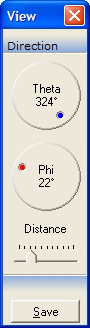 | The 3-D Viewpoint ("View") dialog sets the viewpoint position relative to the plot surface. The adjustments are made relative to an azimuth of 0, looking into the X axis, and an elevation of 0, with the XY plane viewed edge-on. This tool window may be open while you do other things in Mira. Settings in the window are those of the current 3-D Plot window having focus.