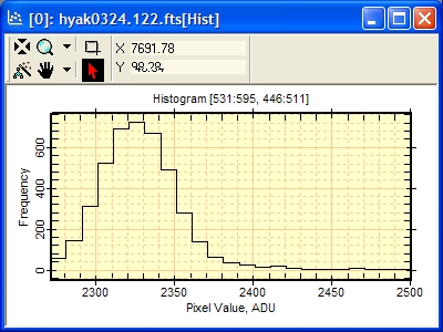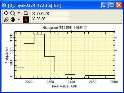The Histogram Properties dialogs change the way the image data are binned into the histogram plot. The screen-shots below show the result of varying the Properties on the same sample of image data. This shows a sample of about 4000 pixels from an integer type image in which the sample includes a small number of very high pixels.