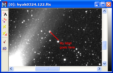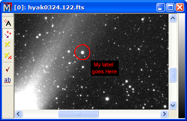 The examples below show the process of adding labels to an image. See Labeling Images for a description of the procedure. To make the changes shown below, the Label Properties Dialog was used for changing the marker and font and the Change Label Text dialog was used to change the actual text of each label. Commands operate from the Label Toolbar shown on the left margin of the Image Window.
